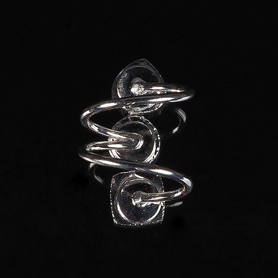 3つのストーンをつなげる、らせん状になったリング部分は指に巻き付くようなデザインがユニーク。ホールド感のある着け心地で安定するので、女性の方であれば薬指や小指など細めの指以外におすすめのサイズ感です。