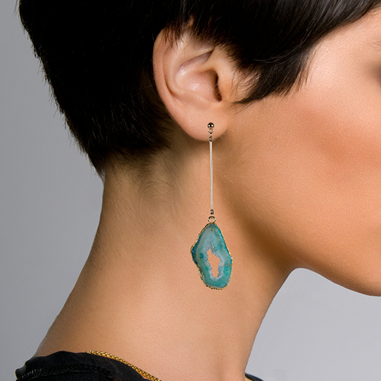 英語ではアゲートジオード(agate geode)やアゲートドゥルージー(agate drusy)とも呼ばれている希少性のある鉱物です。アクセサリーに加工されているものは珍しく、あまり出回っていません。