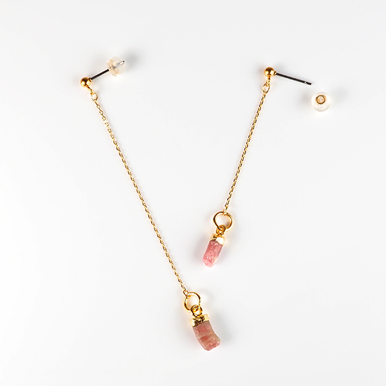 耳元で揺れ動く繊細なチェーンから、まるで原石のしずくがこぼれ落ちるかのような美しいアクセサリーです。