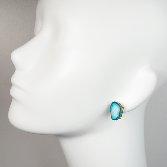 【一点物】耳元で優美にきらめく天然石・鉱物のアクセサリー、爽やかな色合いのトレジャーメノウ(アゲート)のスタッドピアス